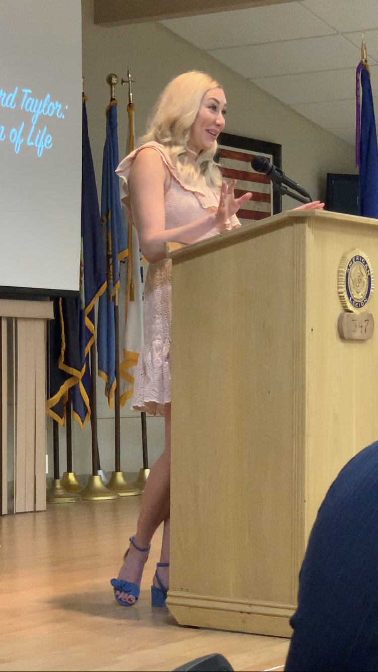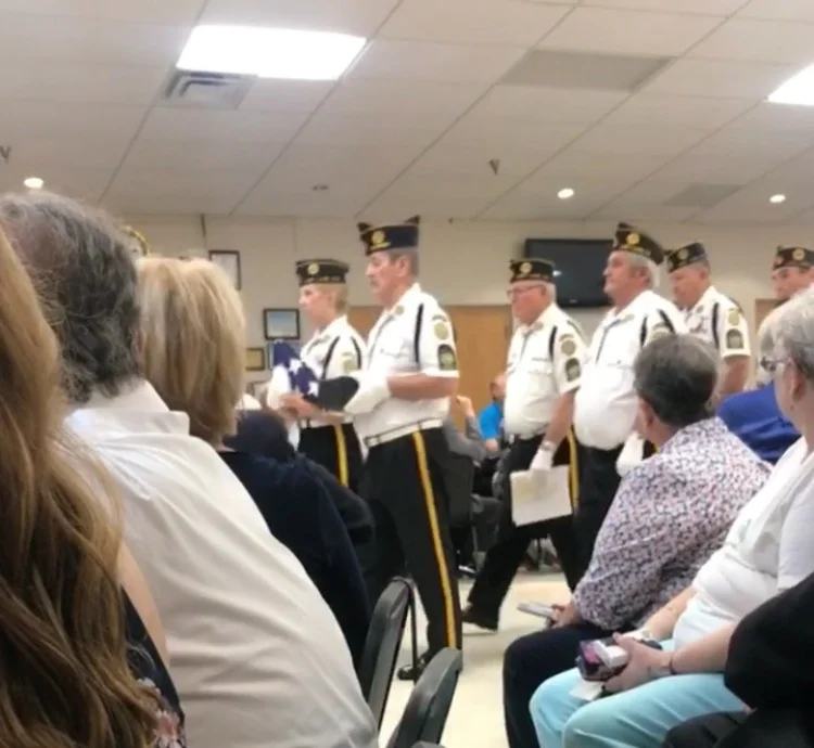 The celebration began with nearly 100 people in attendance and a full military honors ceremony which was assisted by the Legion’s 24-member Honor Guard. There was then a Bible presentation, the flag folding ceremony performed by the Honor Guard and presented to my Grams, Leta Taylor. The flag was placed in her hands with the required wording, “On behalf of the President of the United States and a grateful nation.” There was not a dry eye in the house.